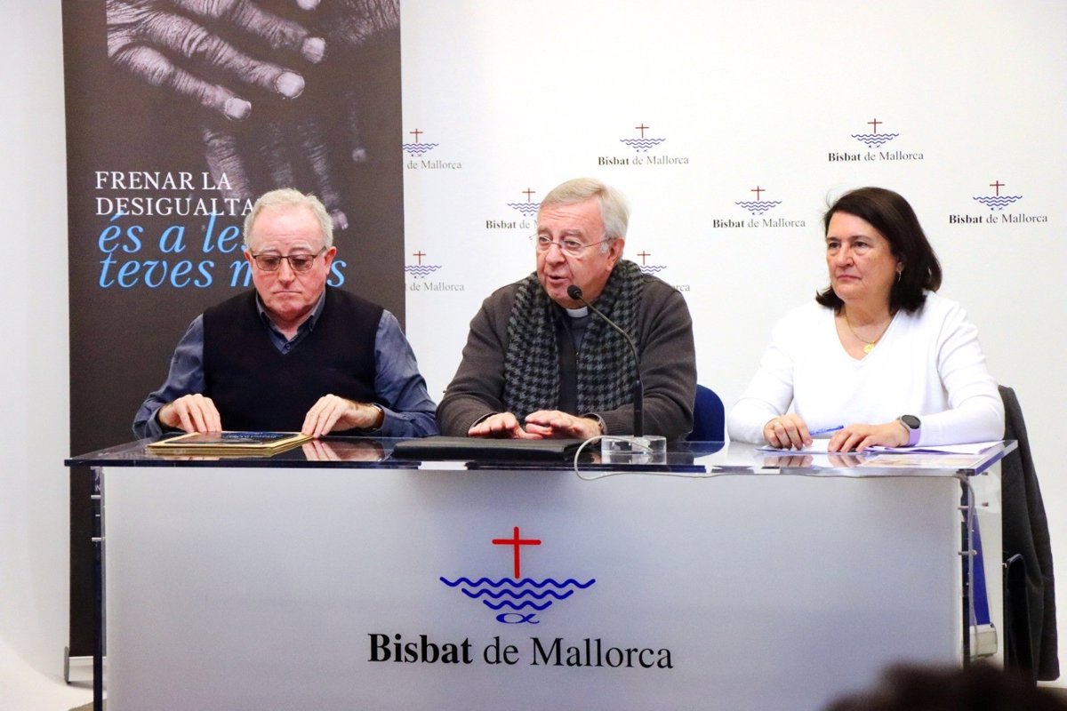Archivo - (De izquierda a derecha) El consiliario diocesano, Antoni Vera; el Obispo de Mallorca, Sebastià Taltavull; y la delegada diocesana de Mans Unides Mallorca, Francisca Artigues, en una foto de archivo. - MANS UNIDES - Archivo