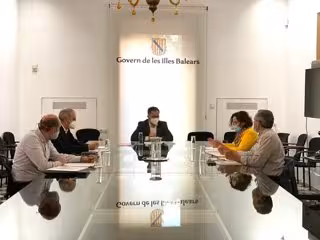 El conseller de Movilidad y Vivienda, Josep Marí, acompañado del director general de Movilidad y Transporte Terrestre, Jaume Mateu, se han reunido este martes con representantes de la Asociación de Usuarios del Tren para escuchar las diferentes propuestas que estos han planteado respecto del nuevo sistema tarifario que entró en vigor con las nuevas concesiones del TIB.