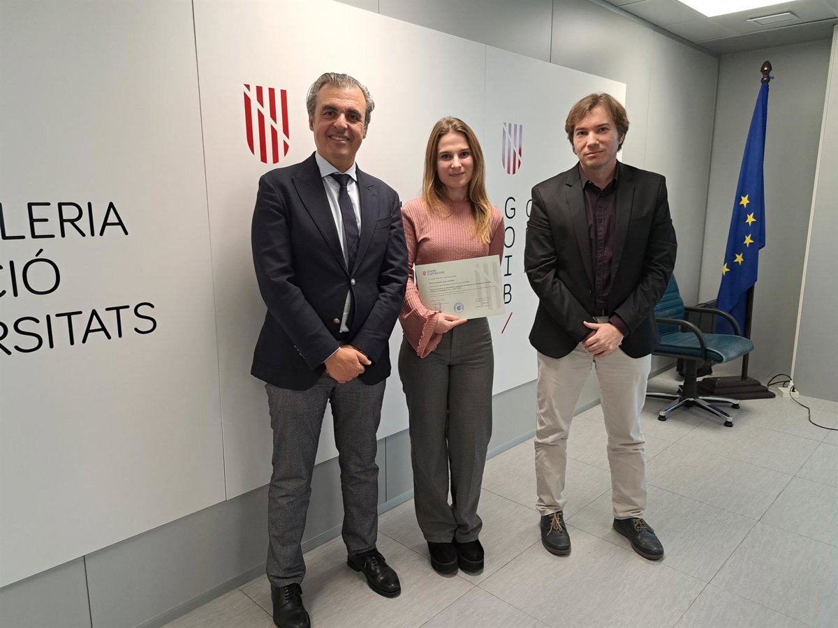 El conseller, Antoni Vera, ha entregado este lunes el premio en la Conselleria, acompañado del director general de Universidades y Enseñanzas Artísticas Superiores, Sebasti Massanet.