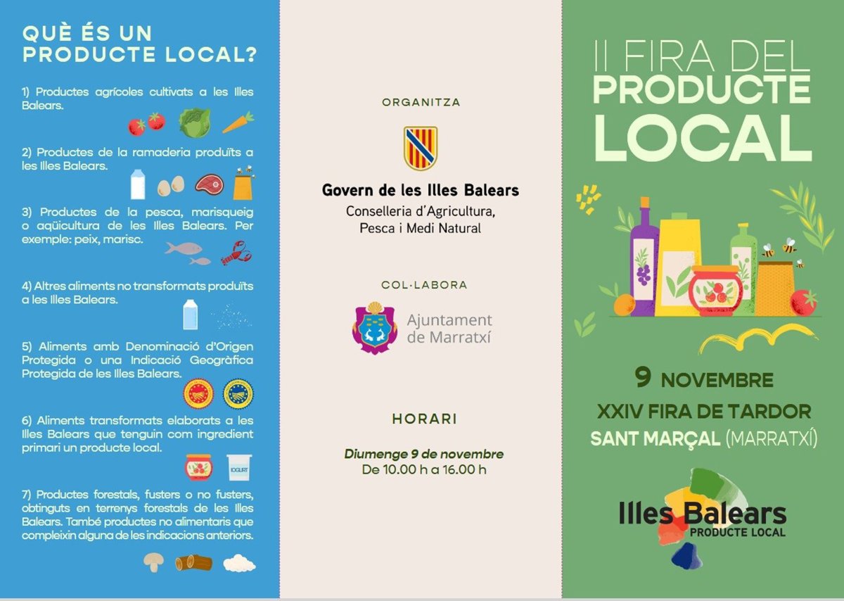 La II Feria del Producto Local, en el marco de la XXIV Fira de Tardor de Marratxí, se celebrará este domingo, 9 de noviembre, en Sant Marçal.