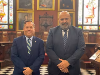 El cónsul honorario de Brasil en Baleares, Ansgar Thune, y alcalde de Palma, Jaime Martínez, en una visita al Salón de Sesiones Plenarias del Ayuntamiento. - AYUNTAMIENTO DE PALMA