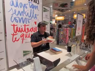 Blue Jeans, autor de novela juvenil romántica, ha firmado ejemplares de su obra en la Librería de El Corte Inglés de Avenida de Palma de Mallorca, a la que se han acercado más de un centenar de jóvenes para hacerse con el texto firmado del autor sevillano.