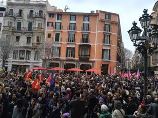 Las calles que enlazan con la Plaza de Cort también se han llenado por la gran afluencia de personas que procedían de otras movilizaciones, como una convocada por los sindicatos CCOO y UGT que ha abarrotado la calle Colom.