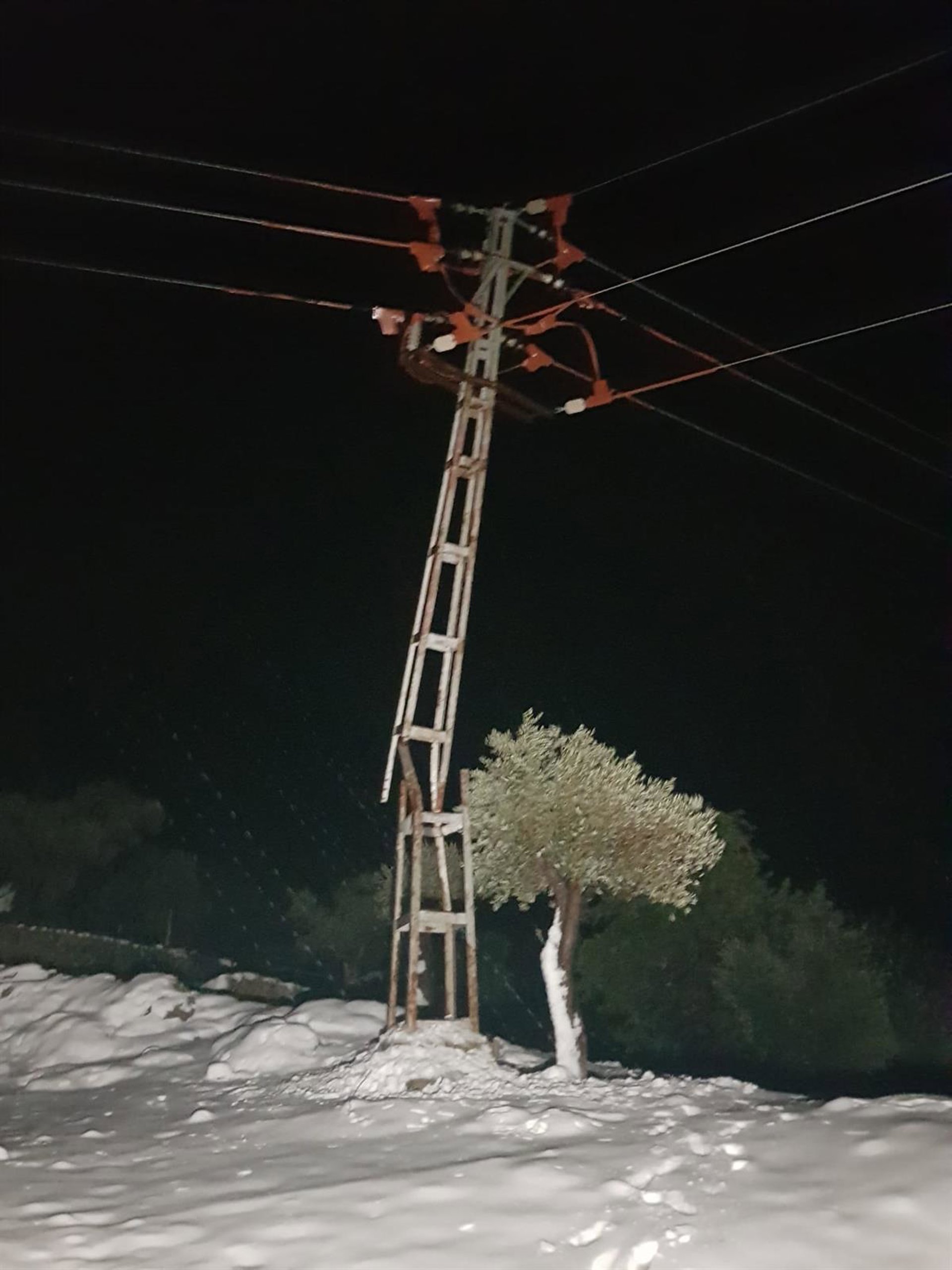 Torre de electricidad afectada por el temporal en una zona nevada. - ENDESA