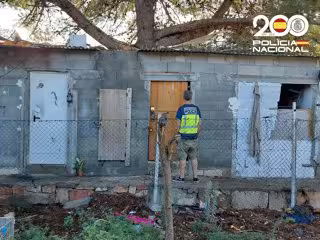 Un agente de policía frente a una de las infraviviendas de Manacor. - POLICÍA