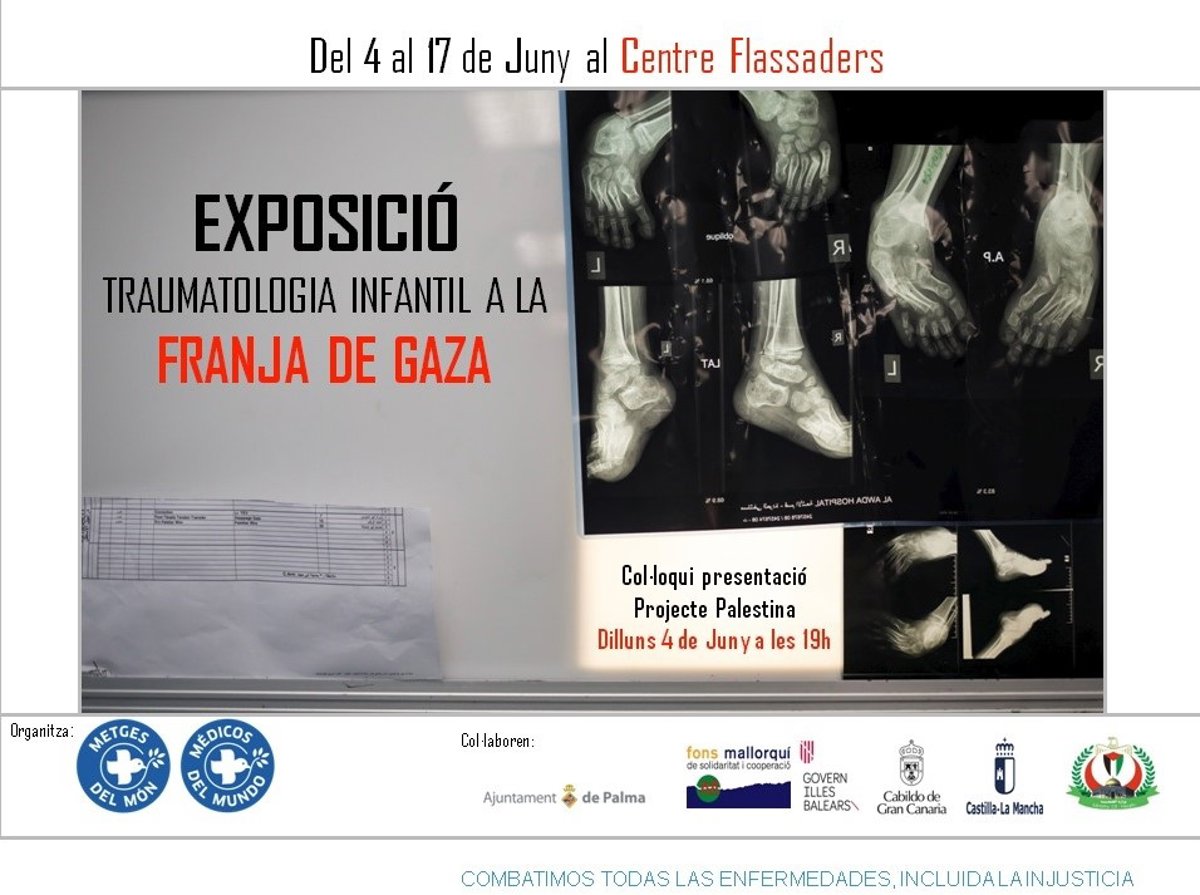 La ONG Médicos del Mundo presenta desde las 19.00 horas del lunes 4 de junio hasta el domingo 17 del mismo mes la exposición 'Traumatología infantil en la franja de Gaza' en el Centro Flassaders de Palma para hablar del proyecto, de la situación y del trabajo en el territorio por parte de la organización.
