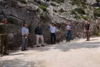 El conseller de Medio Ambiente, Miquel Mir, en la visita a los caminos reparados. - CAIB