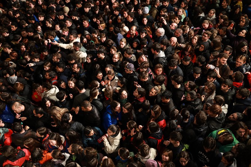 Multitud de personas en la plaza Vella para disfrutar del 'Pi de Sant Antoni'