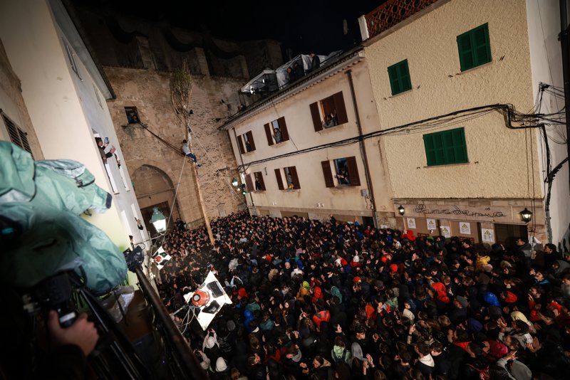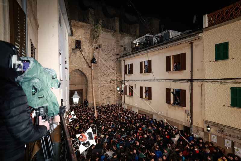 La fiesta comenzó el 7 de enero, cuando se fue a cortar el pino, a la finca de Ternelles, en el término municipal de Pollença. Sin embargo, el tronco se ha reservado hasta este sábado cuando sobre las 17.00 horas se ha comenzado a mover de manera sorprendentemente rápida pese a la lluvia para colocarlo en la plaza.