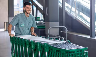 Un trabajador de Mercadona coloca los carros de la compra. - MERCADONA