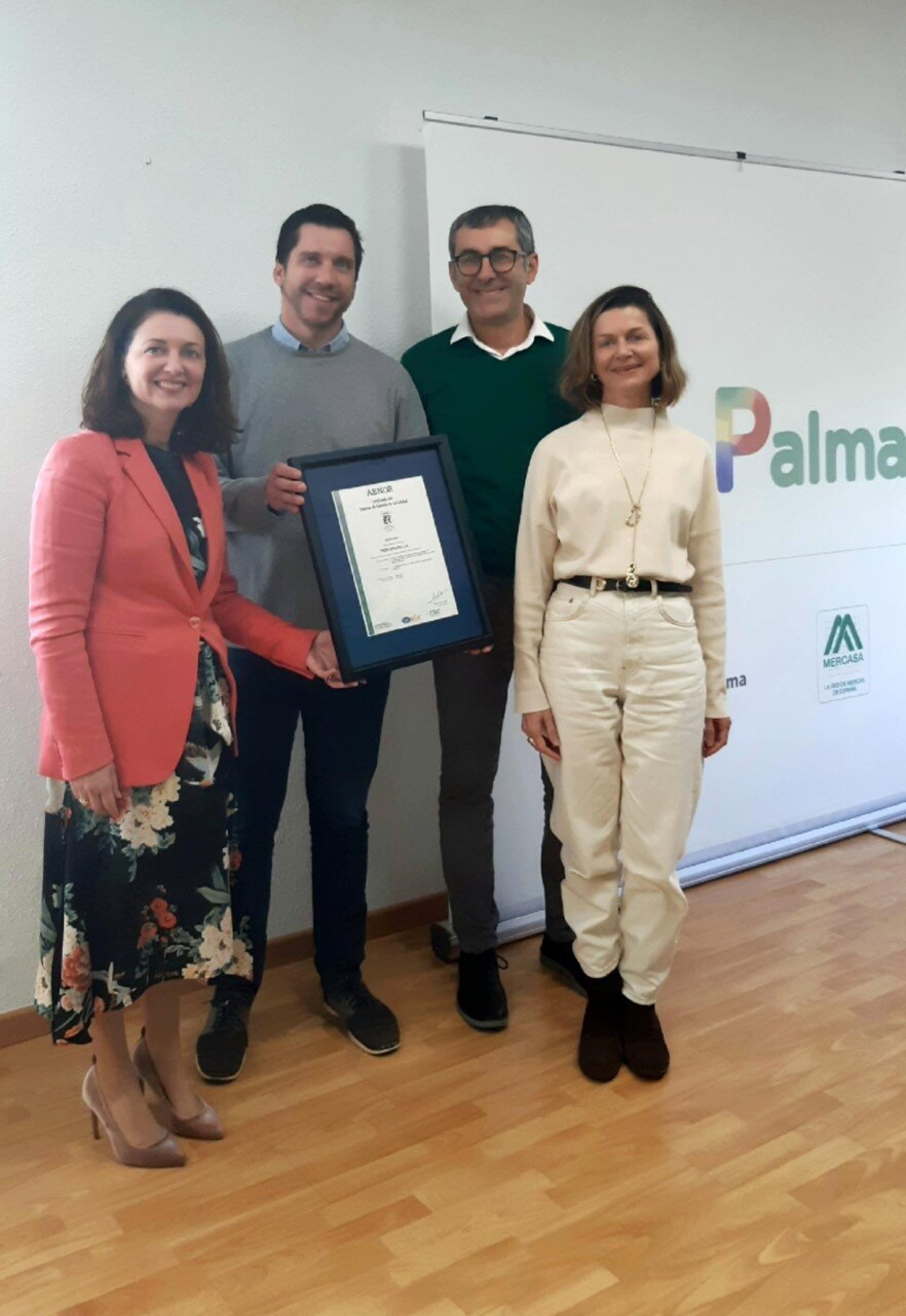 Al acto de entrega del reconocimiento ha asistido el regidor de Promoción Económica y Ocupación, Rodrigo Romero. También han estado presentes la directora de Aenor en Baleares, Soledad Seisdedos, el director gerente de Mercapalma, Jeroni Barbón, así como trabajadores.