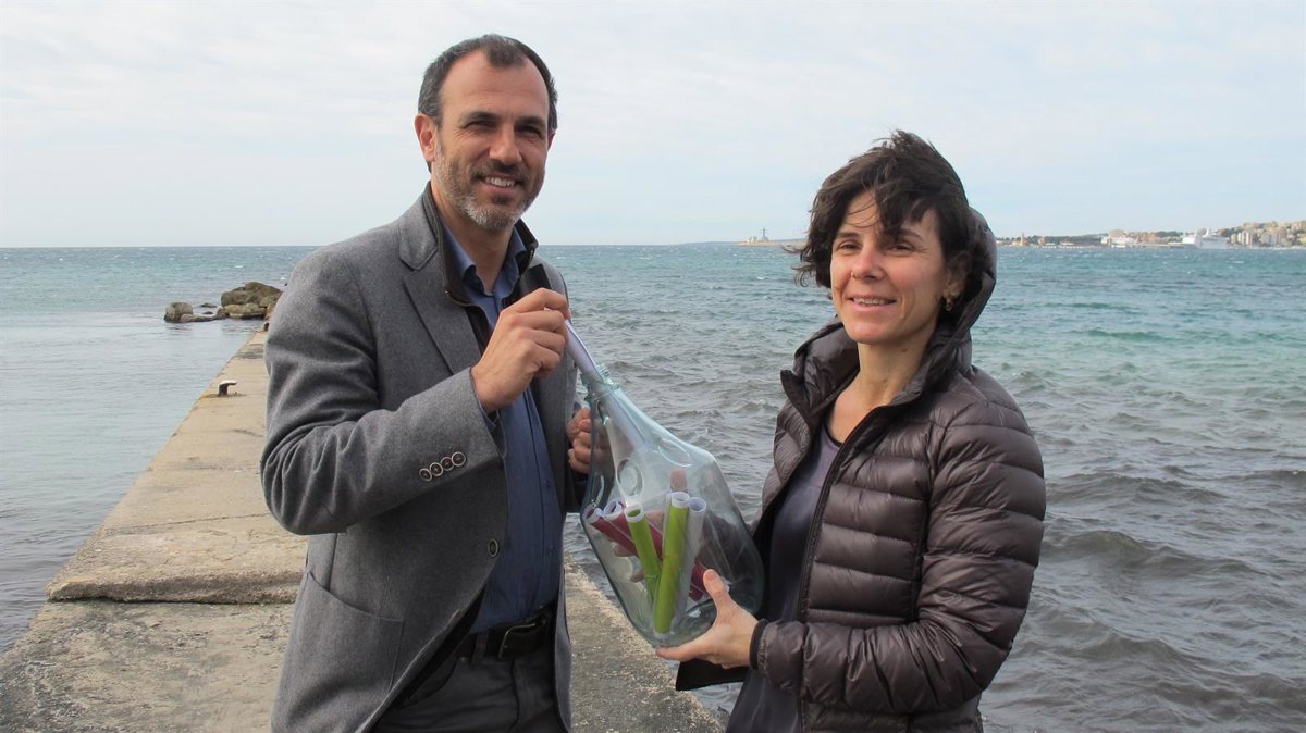En un espigón de la playa de Can Pere Antoni y junto a la candidata el Parlament, Margalida Capellà, ha escenificado que enviaba una carta dirigida al Gobierno central en una botella de vidrio que, por vía marítima, debía llevar el mensaje con sus propuestas a Madrid.