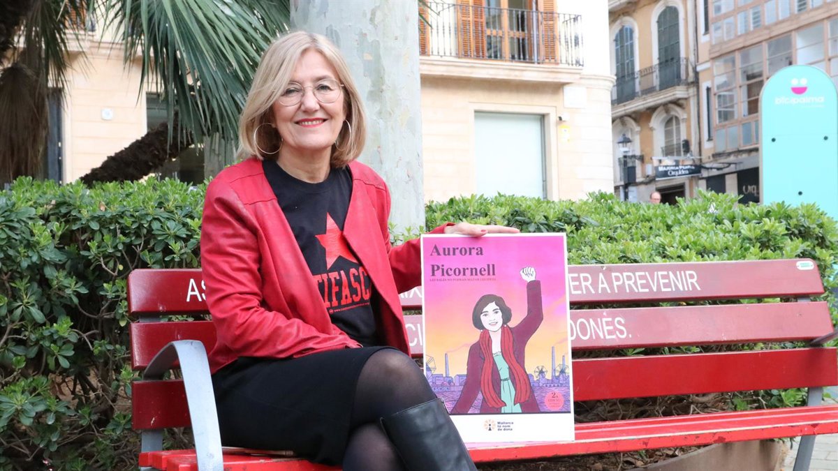 La consellera de MÉS per Mallorca en el Consell insular Rosa Cursach posa con el cómic sobre Aurora Picornell que piden reeditar. - MÉS PER MALLORCA