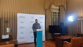 El portavoz de MÉS per Mallorca en el Parlament, Lluís Apesteguia, en una rueda de prensa. - EUROPA PRESS