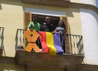 El grupo municipal de MÉS en el Ayuntamiento de Palma ha colgado este lunes la bandera republicana en la ventana del balcón de sus despachos, junto con el lazo cuatribarrado que ya había.