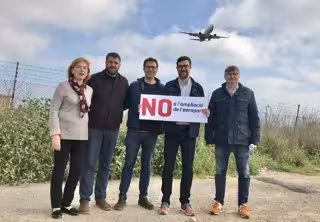 El coordinador de MÉS per Mallorca, Antoni Noguera, acompañado de alcaldes y regidores de la formación ha anunciado la presentación de mociones en todos los ayuntamientos para demostrar que el rechazo a la ampliación del aeropuerto de Palma es un "clamor generalizado".