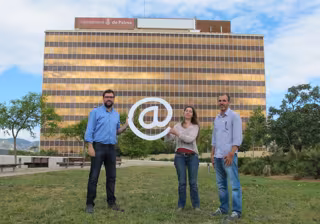 El candidato de MÉS per Palma a la alcaldía de Cort, Antoni Noguera, la candidata número dos, Nieves Truyol y el candidato a la presidencia del Govern, Biel Barceló, han comparecido este sábado en rueda de prensa ante el edificio de GESA para proponer en su programa la creación de un Distrito Digital en el barrio de Nou de Levante, y con este edificio como icono de la nueva apuesta por la economía del conocimiento.