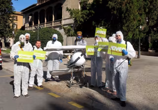 MÉS ha manifestado este viernes su rechazo a las fumigaciones contra la procesionaria del pino que se están llevando a cabo durante estos días en Baleares con una performance ante el Consolat de Mar -sede del ejecutivo balear- con el objetivo de exigir al Govern que se suspenda la campaña de fumigaciones aéreas con el insecticida Dimilin. Al acto ha asistido el diputado del Grupo David Abril, así como también varios jóvenes de la formación.