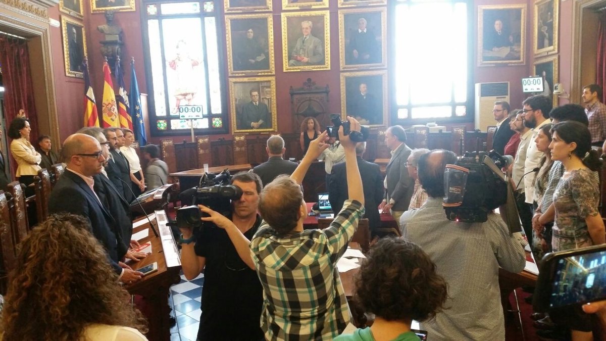 El Ayuntamiento de Palma ha mantenido un minuto de silencio al inicio del debate de la ciudad en honor del joven piloto fallecido, Luis Salom.