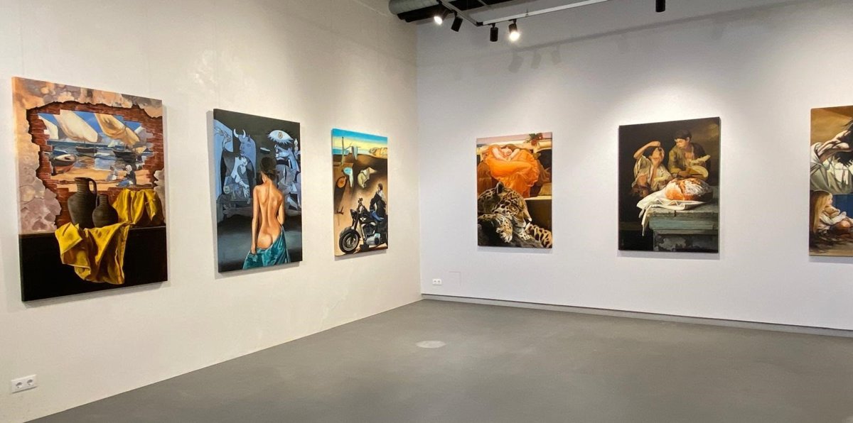 La exposición 'Pasado y presente' es una colección de 20 pinturas al óleo del grupo artístico formado por el maestro Portaolaya --Luciano Portales-- y sus hijas Cristina y Almudena. Cada uno de los óleos está inspirado en diferentes obras de grandes maestros de la pintura que han sido reinterpretadas, al fusionar la pintura clásica con la actual.