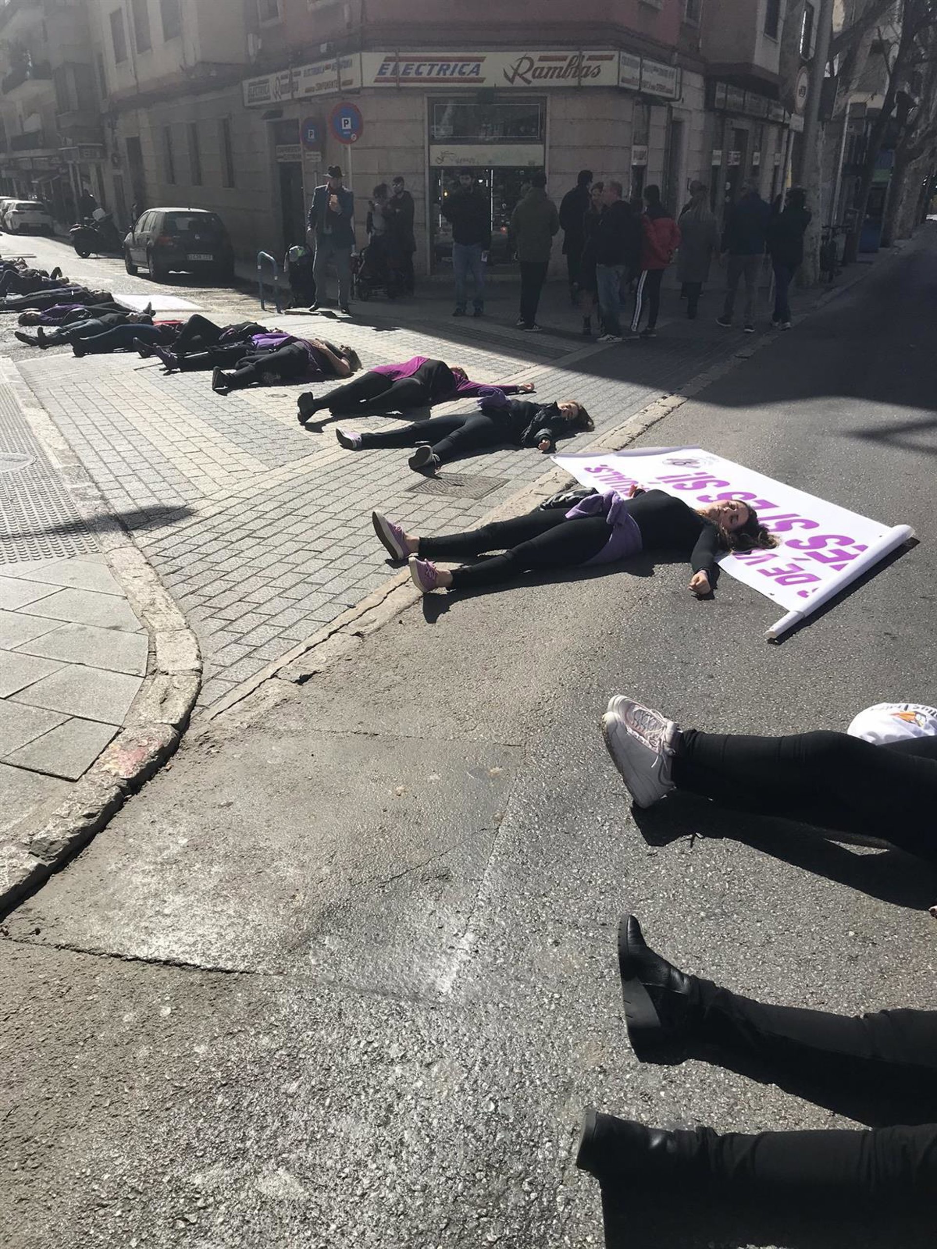 Las mujeres del Movimiento Feminista de Mallorca este sábado en una acción frente a los juzgados de Palma. - TWITTER MOVIMIENTO FEMINISTA DE MALLORCA