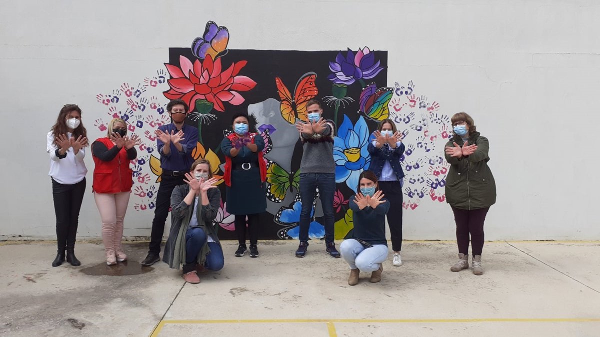 Además de pintar el mural, también han invitado a aquellas personas que quieran participar en esta iniciativa a marcar con pintura sus manos en forma de mariposa para unirse a esta red social y han leído un manifiesto.
