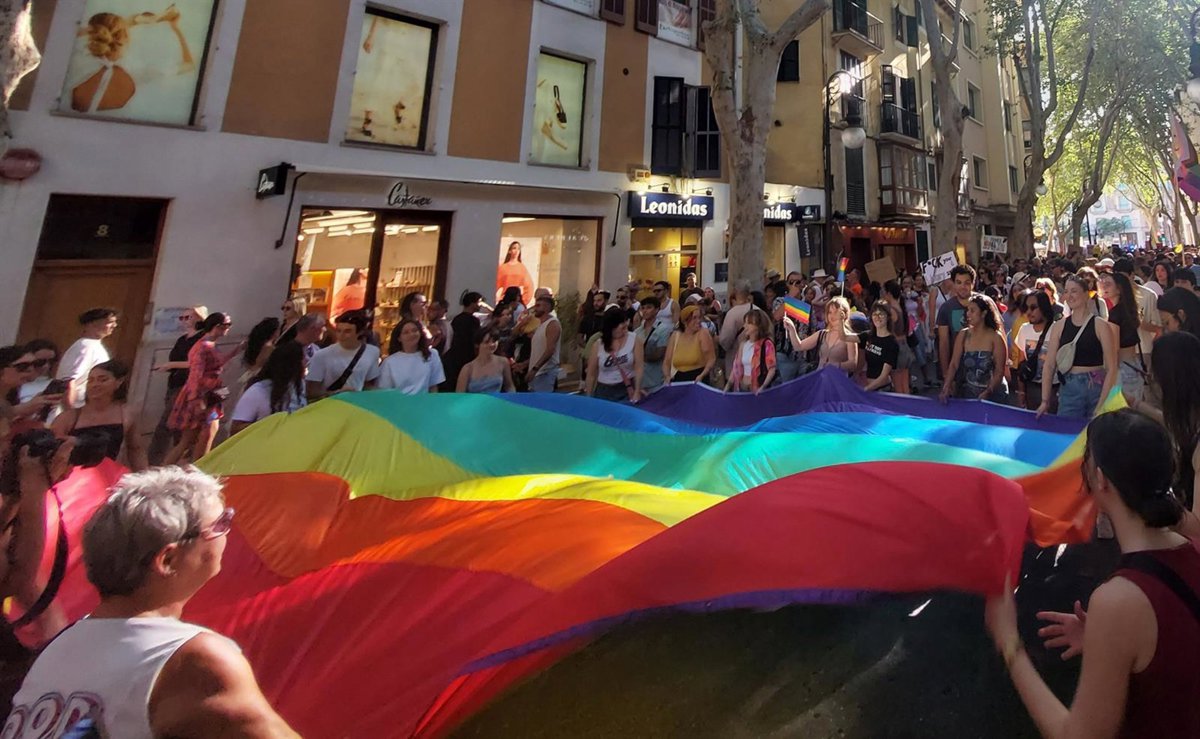 Unas 1.300 personas se han manifestado este sábado, 28 de junio, en Palma, en dos marchas, una de ellas convocada por la asociación Ben Amics --con unos 1.000 asistentes, según cifras policiales--, y otra por la plataforma Orgull Crític Mallorca --con 300 asistentes, según policía--, con motivo del Día del Orgullo Lgtbi 2025.