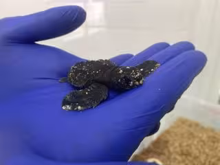 La pequeña tortuga marina ha nacido después de 46 días de incubación, dentro de los plazos habituales de eclosión que se sitúan entre los 45 y los 65 días desde la puesta.