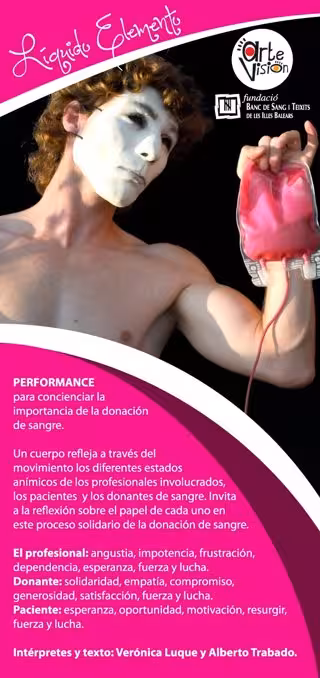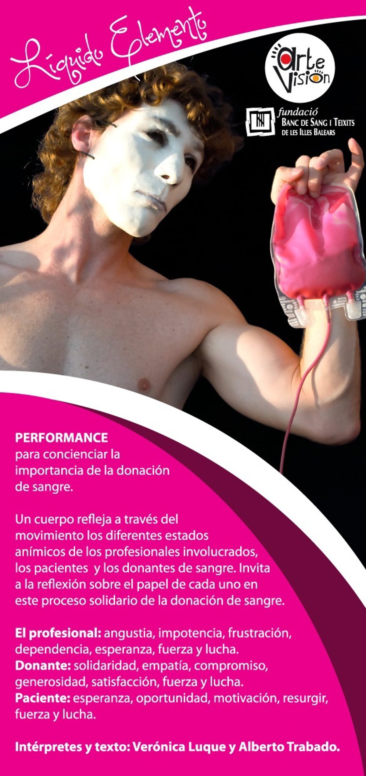 La Nit de L'Art dedicará un performance bajo el título 'Liquido elemento', que tendrá lugar este sábado a las 20:00 y a las 21:20 horas, en el espacio La Alhambra del Pueblo Español, con el objetivo de concienciar a la población sobre la importancia de donar sangre.