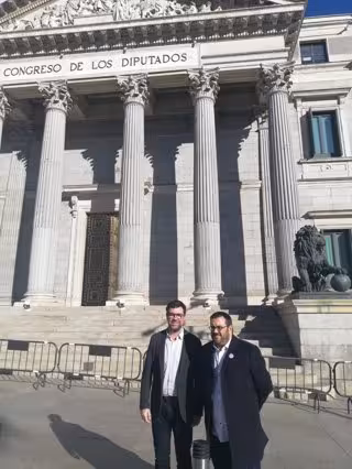 El coordinador de MÉS per Mallorca, Antoni Noguera, y el senador autonómico, Vicen Vidal, acuden a la primera sesión de investidura del candidato a presidir el Gobierno, Pedro Sánchez. - MÉS PER MALLORCA