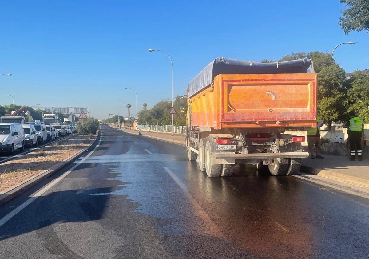 El incidente ha tenido lugar sobre las 07.25 horas de este miércoles en las inmediaciones de Son Pacs en la incorporación hacia Palma centro. La pérdida del combustible, provocada por una avería, ha obligado a cortar el tráfico y ha provocado retenciones que se ha extendido hasta el camí dels Reis.