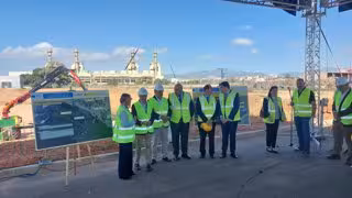 El secretario de Estado de Medio Ambiente, Hugo Morán, el delegado del Gobierno en Baleares, Alfonso Rodríguez, el acalde de Palma, Jaime Martínez, y el conseller del Mar y el Ciclo del Agua, Juan Manuel Lafuente, en las obras de la depuradora Palma II. - EUROPA PRESS