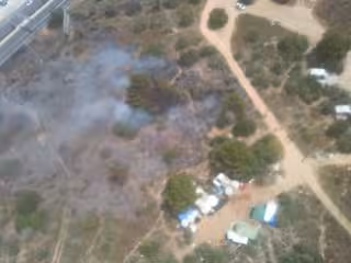 El sábado, en otro incendio, el fuego calcinó 1.800 metros cuadrados de maleza y 14 personas tuvieron que ser desalojadas de los campamentos. Un hombre sufrió quemaduras leves en los pies.