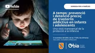 La Oficina Balear de la Infancia y la Adolescencia (OBIA) organiza para el próximo lunes una jornada informativa dirigida a las familias para promover la prevención y la detección precoz de los trastornos adictivos en la infancia y la adolescencia.
