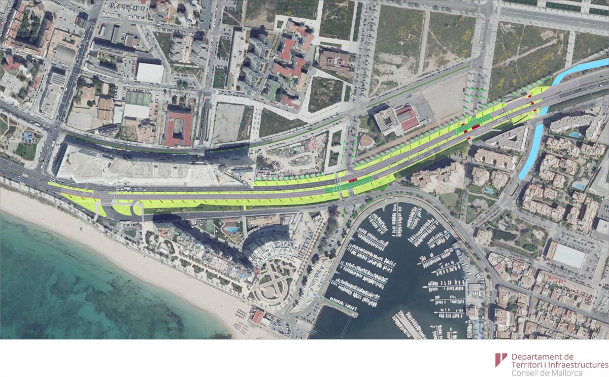 Durante el mes de junio y julio, en dirección al aeropuerto de Son Sant Joan, se dejará sin circulación uno de los tres carriles de salida de Ciudad para poder trabajar en la media, donde se han de sacar las vallas New Jersey; por otro, en dirección a Palma, no se verá afectado ninguno de los tres carriles.