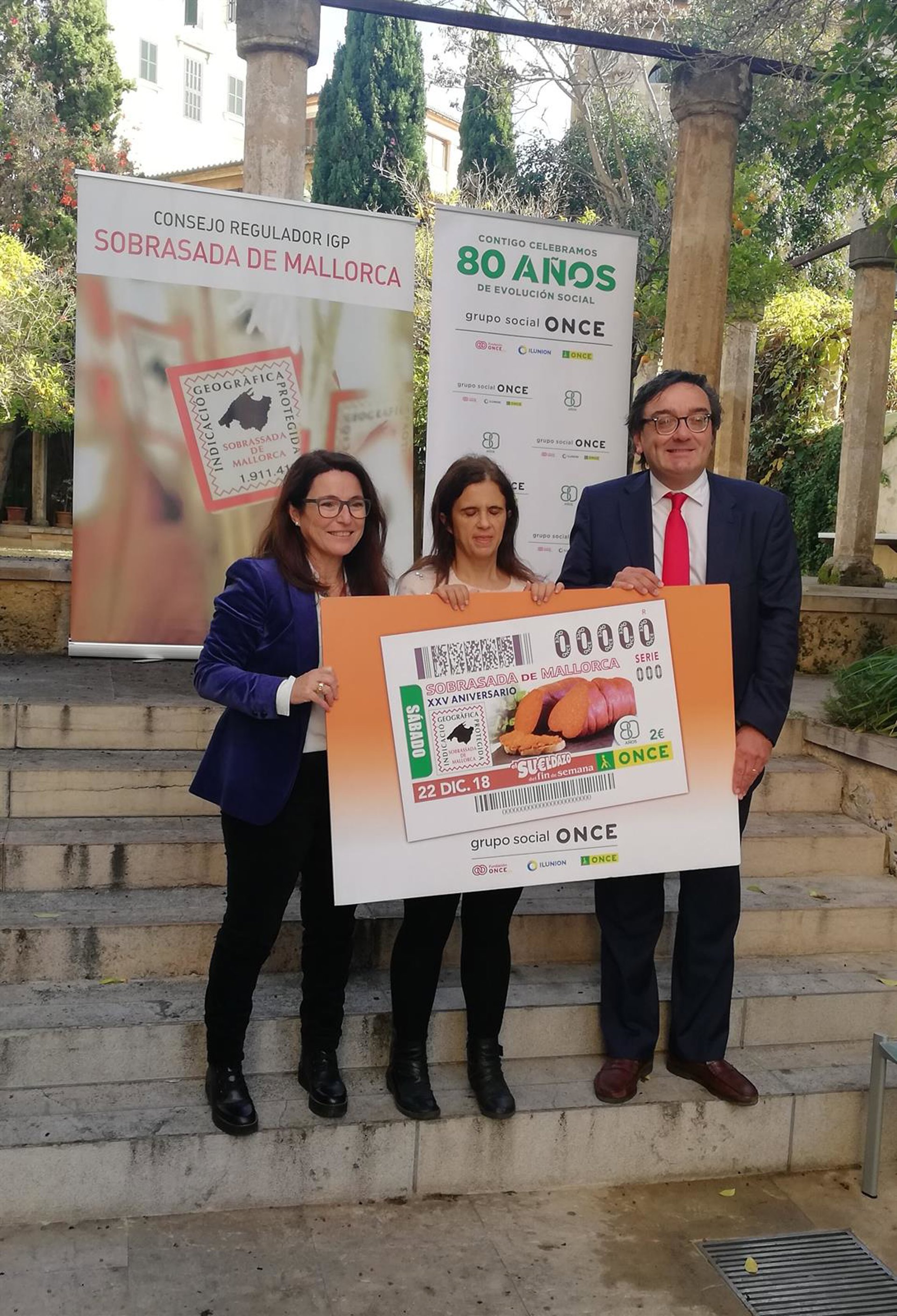 La ONCE ha presentado este lunes el cupón que dedicará el sábado 22 de diciembre al 25 aniversario del Consejo Regulador de la Sobrasada de Mallorca.