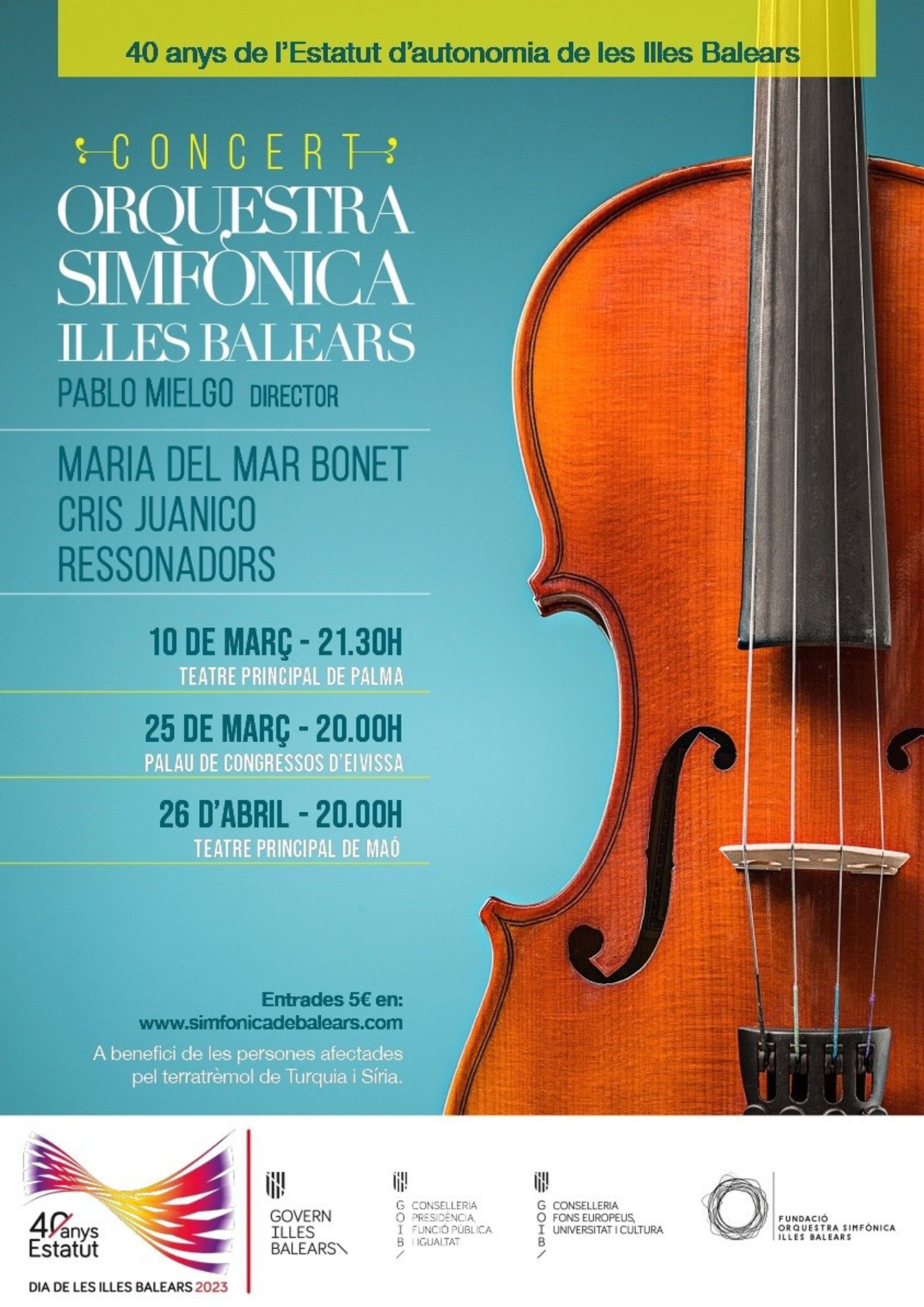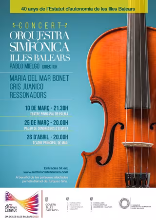 Cartel del concierto que la Orquesta Sinfónica de Baleares ofrece este miércoles en el Teatro Principal de Mahón por los 40 años del Estatut d'Autonomia - CAIB