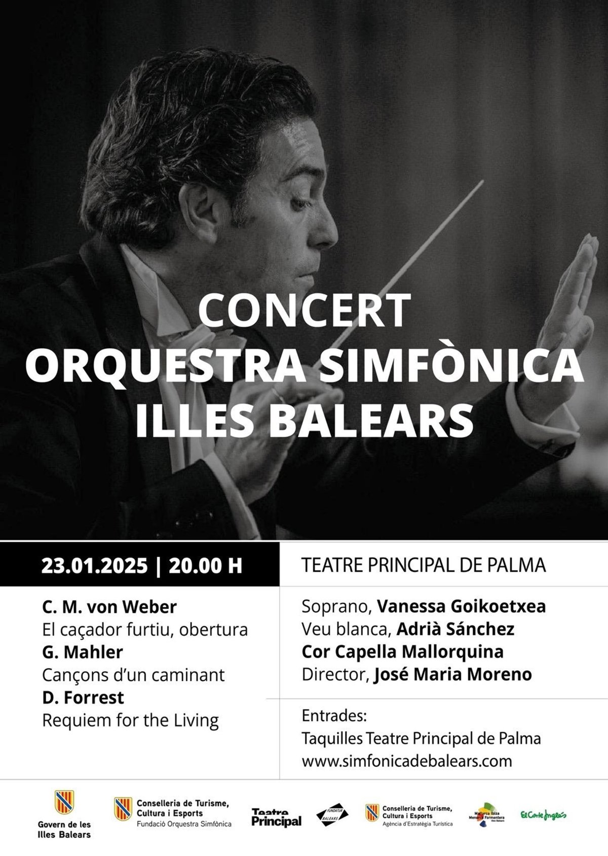 La Orquestra Simfònica de Balears, la soprano Vanessa Goikoetxea, la voz blanca de Adrià Sánchez, el Cor de la Capella Mallorquina y el director mallorquín José María Moreno ofrecerán dos conciertos en el Teatre Principal de Palma y el Teatro de Manacor, en los que se interpretarán composiciones de Weber, Mahler y Forrest.