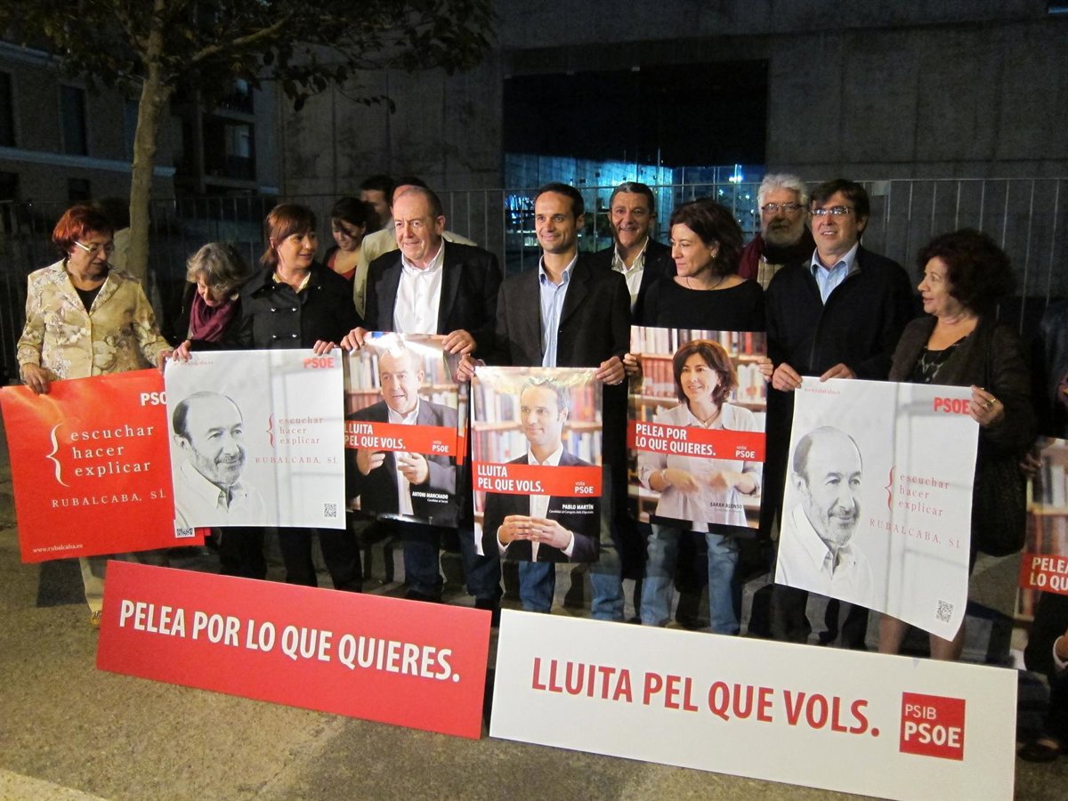 Los candidatos del PSIB al Congreso de los Diputados y al Senado, Pablo Martín y Antonio Manchado, respectivamente, han participado esta tarde en la tradicional pegada de carteles que da el pistoletazo de salida a la campaña electoral en un acto simbólico en el que han asegurado que van a centrar sus esfuerzos en explicar a la ciudadanía los ejes del modelo político que quieren desarrollar y cuyo peso recaerá sobre políticas económicas encaminadas a la generación de empleo.