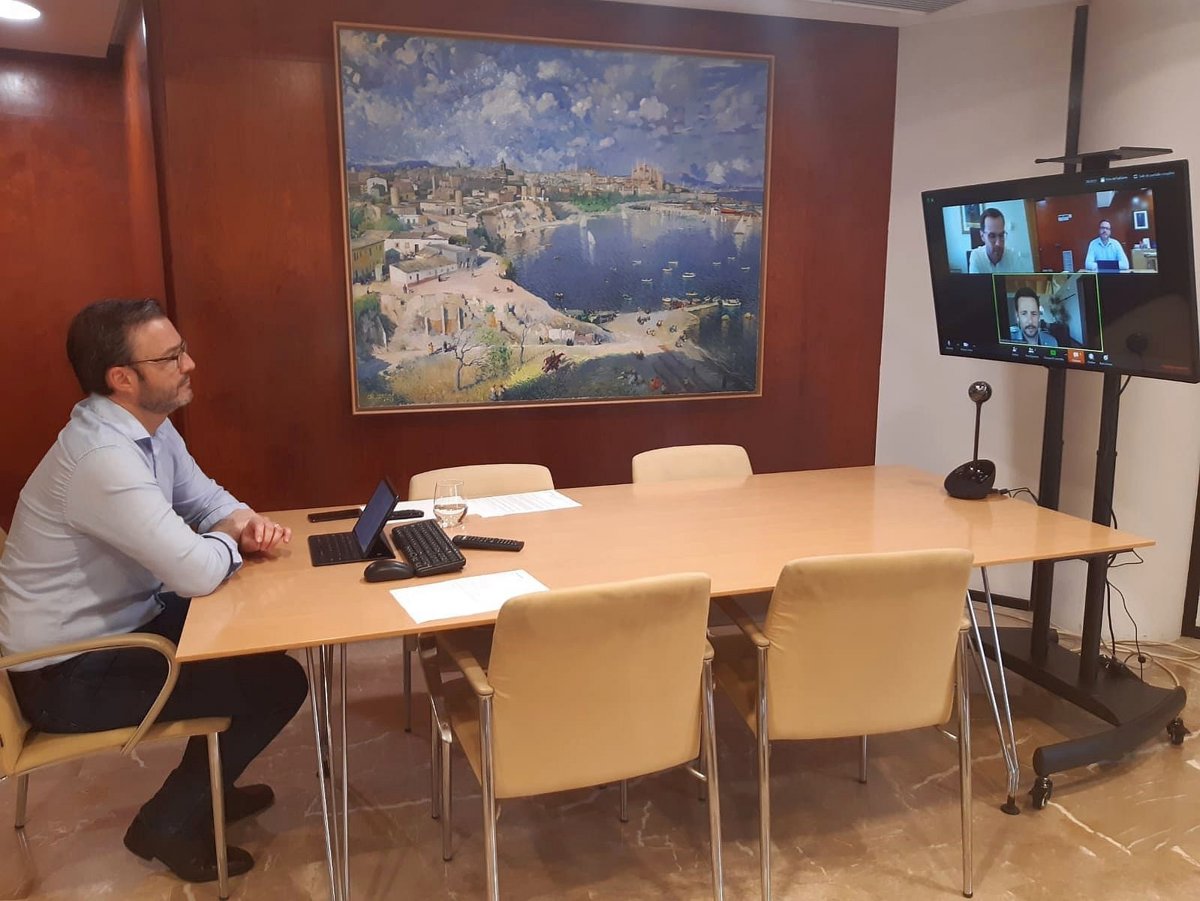 El alcalde de Palma, José Hila, el de Ibiza, Rafa Ruiz y el de Mahón, Héctor Pons, se han reunido de manera telemática para coordinar acciones conjuntas en el marco de la crisis del COVID, abordando temas como la movilidad sostenible con la apertura de más calles para peatones o reivindicaciones en materia presupuestaria.