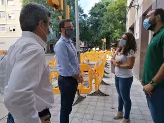 El alcalde de Palma, José Hila, la regidora de Infraestructuras y Accesibilidad, Angélica Pastor, y el regidor de Distrito Llevant, Daniel Oliveira, han visitado este martes las obras de renovación de las aceras de esta vía, que comenzaron la pasada y estarán terminadas en dos o tres meses.