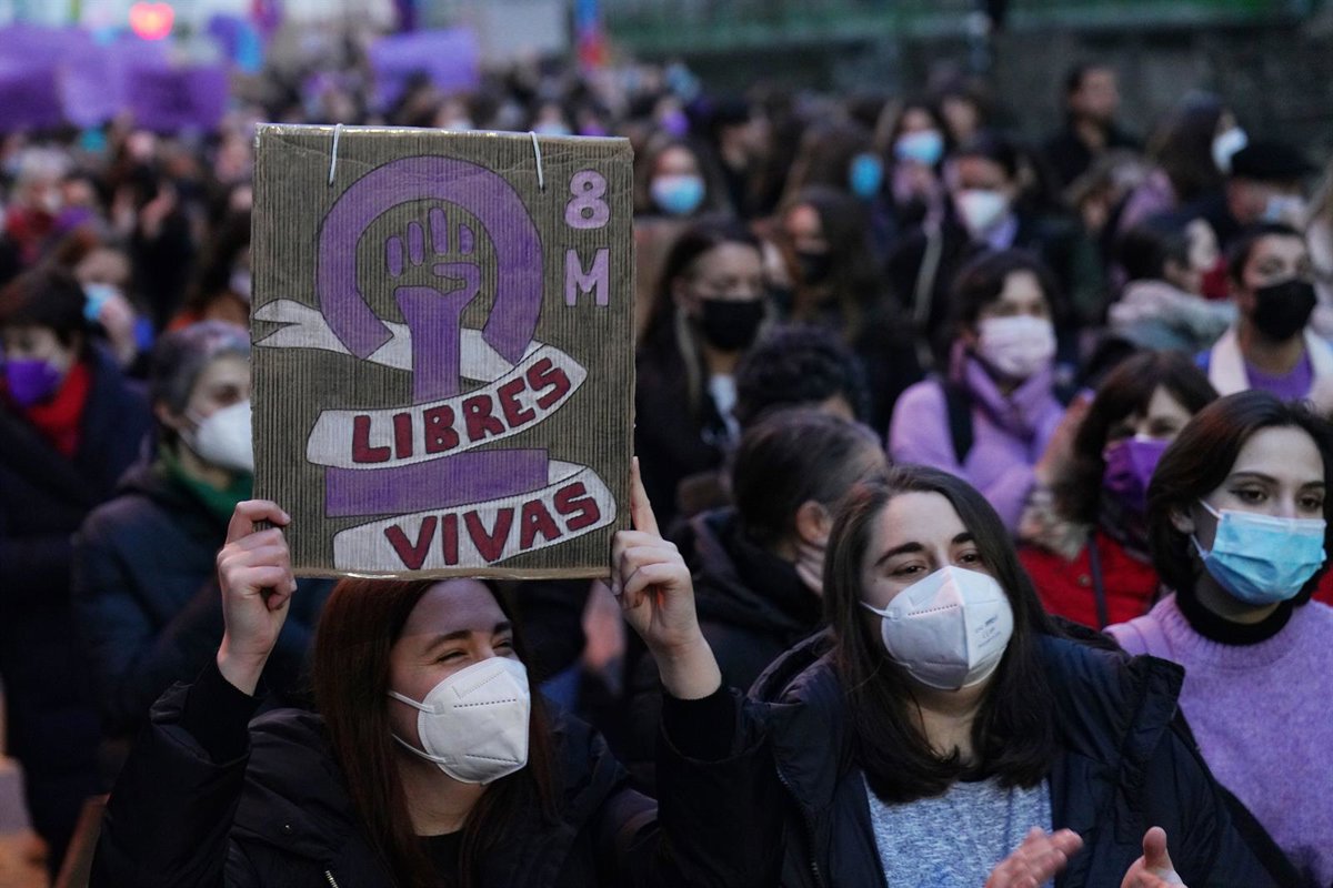 Archivo - Una mujer levanta una pancarta en una manifestación por el 8M, Día Internacional de la Mujer - Álvaro Ballesteros - Europa Press - Archivo