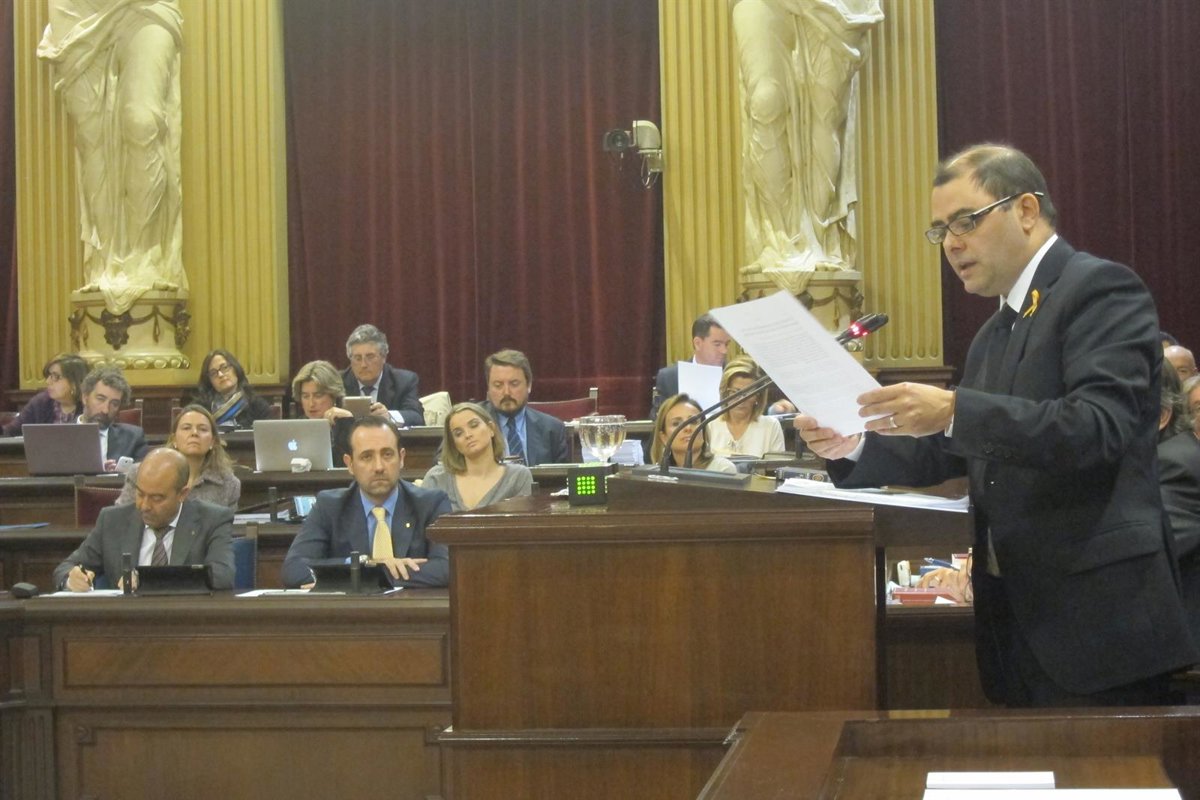 Ha sido un debate tenso, en el que se han mostrado dibujos de caras con bocas tapadas, como los que han exhibido los diputados del grupo MÉS durante la sesión plenaria.