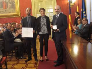 La presidenta de la Cámara autonómica, Margalida Durán, ha entregado la Medalla de Honor y el diploma acreditativo a su marido, el catedrático, Carles Bona García, y su hijo, Carles Bona Casas, en un emotivo acontecimiento que ha contado con la asistencia del presidente del Govern balear, José Ramón Bauzá.