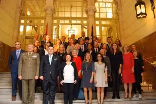 El acto de recepción ha empezado con las palabras de bienvenida de la secretaria primera del Parlament, quien ha rememorado el "espíritu de paz, tolerancia y respeto entre las naciones que inspiró la firma del Convenio de Viena".