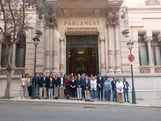 Diputados y portavoces, encabezados por el presidente de la Cámara autonómica se han concentrado a las puertas de las dependencias en la calle Conquistador de Palma.
