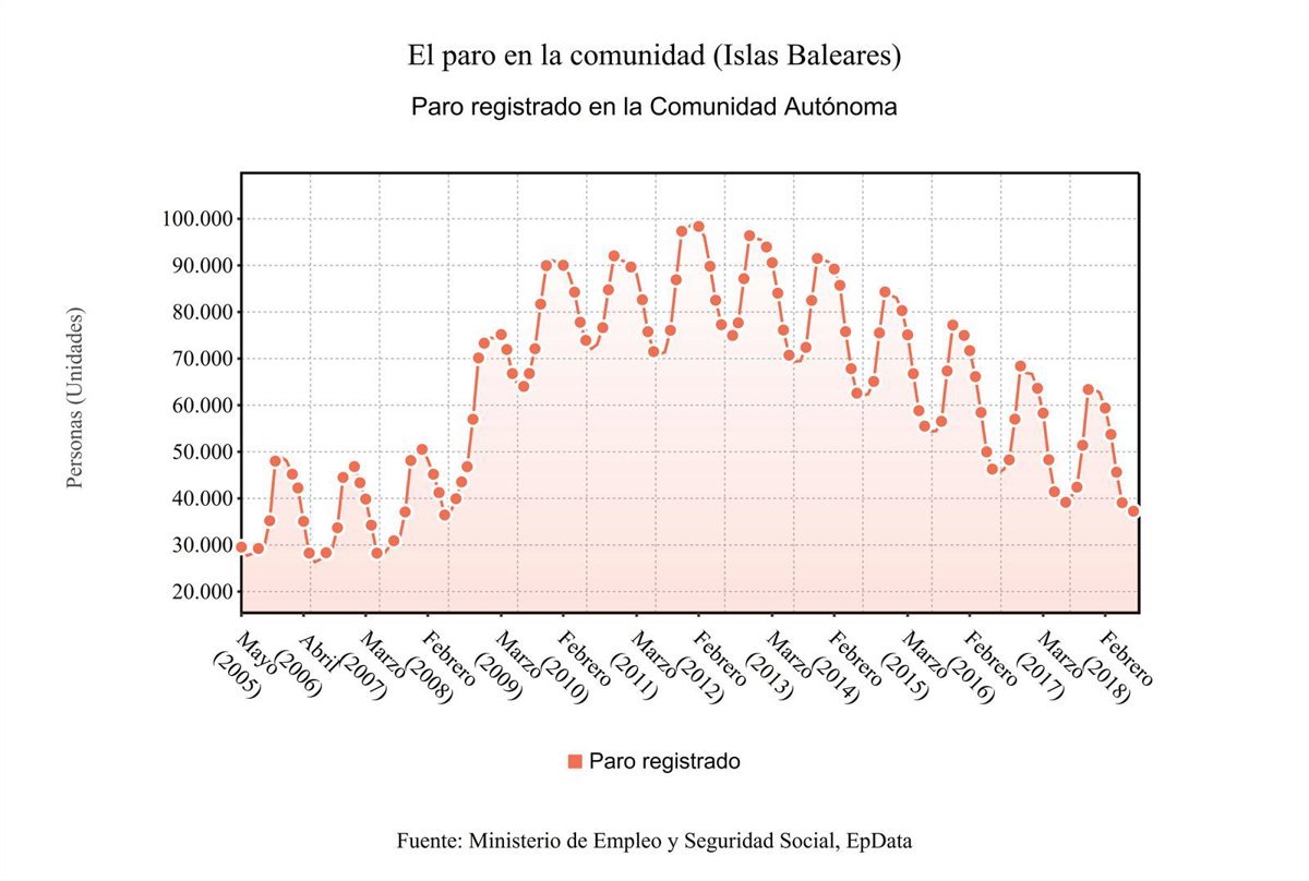 La cifra de parados en Baleares se situó en 38.627 personas en el mes de junio, lo que representa una bajada del 5,86 por ciento respecto al mismo mes del año anterior, según los datos publicados este martes por el Ministerio de Empleo y Seguridad Social.
