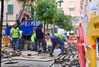 Archivo - Trabajadores que llevarán a cabo la reforma del pavimento en las calles Velázquez y Tous i Ferrer en el municipio de Palma. - AYUNTAMIENTO DE PALMA - Archivo