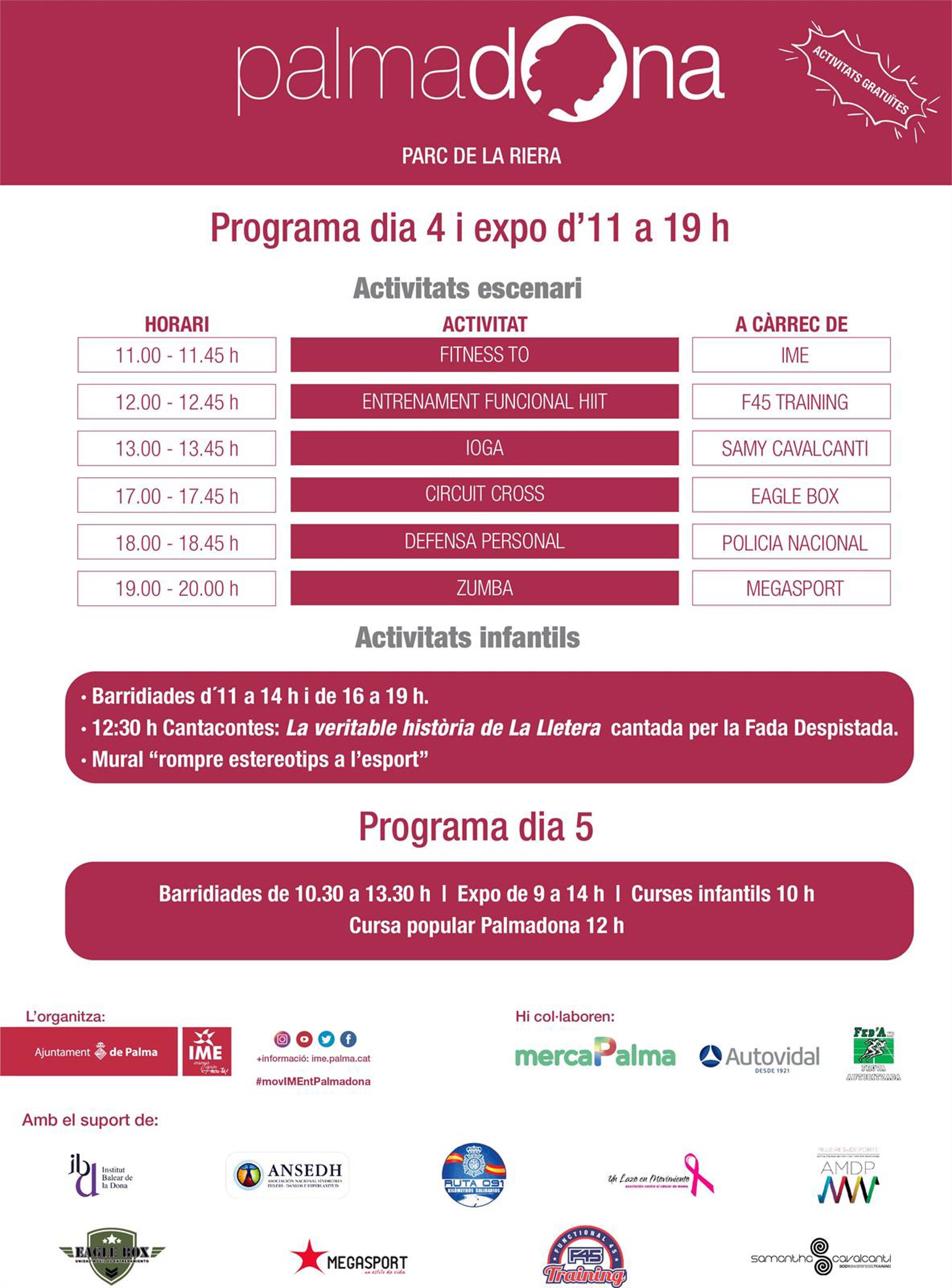 Por otro lado, el parque de la Riera también acogerá actividades infantiles, de 11.00 horas hasta las 14.00 horas y de 16.00 horas a las 19.00 horas habrá una 'Barridiada', además, se realizará el mural colectivo 'romper estereotipos en el deporte', y a las 12.30 horas tendrá lugar el cantacuentos 'La verdadera historia de la lechera', por la Fada Despistada.