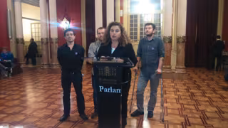 Los responsables de los cuatro grupos han comparecido ante los medios de comunicación en los pasillos del Parlament, minutos después de que se haya aprobado la modificación de la Ley de IB3 que permite designar al director general y al consejo de administración con tres quintas partes de los votos de los parlamentarios y no con dos tercios como ocurría hasta el momento.